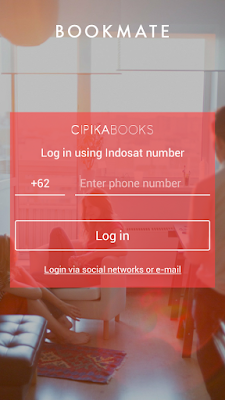 5. Setelah itu login pake nomor INDOSAT kamu, atau bisa juga login via aplikasi Facebook ataupun Twitter (saya saranin pake yang Indosat soalnya kan lumayan dapat promo 1 bulan free baca buku)